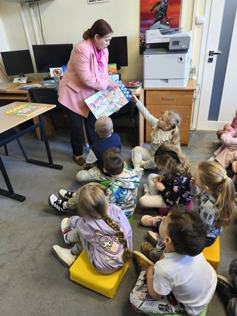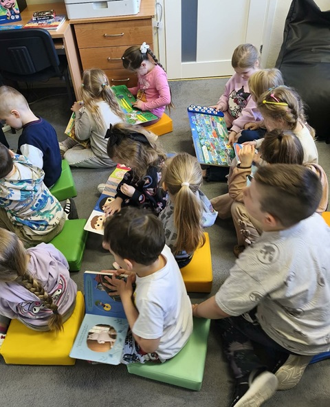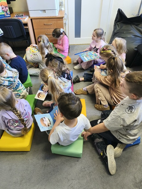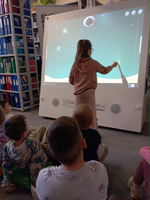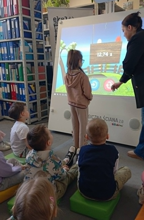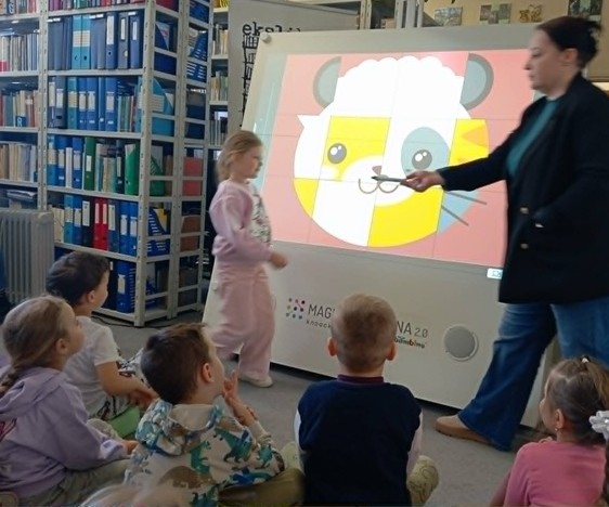 28 kwietnia 2026 A. Mierzwa i A. Wesołowska poprowadziły zajęcia edukacyjne z grupą „Motylki” z MPS nr 4 w Mławie. Tematem przewodnim spotkania była książka i biblioteka. Na naszych przemiłych gości czekało mnóstwo atrakcji. Dzieci dowiedziały się czym jest wypożyczalnia i czytelnia i jakie jest ich przeznaczenie. Następnie wspólnie podziwialiśmy tradycyjne książki w różnorakiej formie: dźwiękowe, rozkładanki, puzzle, harmonijki czy grzechotki, ale też zdobycze nowoczesnych technologii jak seria książek z magicznym piórem Albik. Niesamowitą atrakcją okazała się książka „Muminki szukają domu” w wersji pop-up. Jest to historia o tym jak Muminek i jego Mamusia szukają domu, który porwała powódź. Każda kolejna strona tej przestrzennej opowieści prezentuje bajeczne zakątki i trójwymiarowe sceny, które zachwycają odbiorców. #czytamymuminki Na dzieci czekało również przedstawienie w teatrzyku kamishibai. Dziś na naszym teatralnym afiszu znalazł się ”Kot w butach”. W drugiej części zajęć „Motylki” poznawały zabawy interaktywne na „magicznej ścianie”. W dowód uznania i podziękowania, prowadzące otrzymały piękny dyplom. Dziękujemy za czas spędzony w miłym towarzystwie.