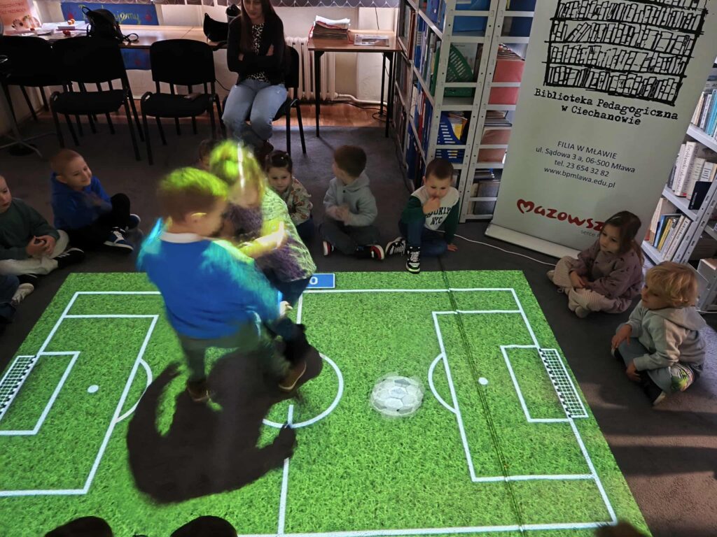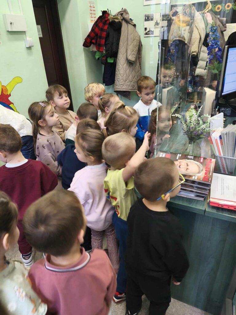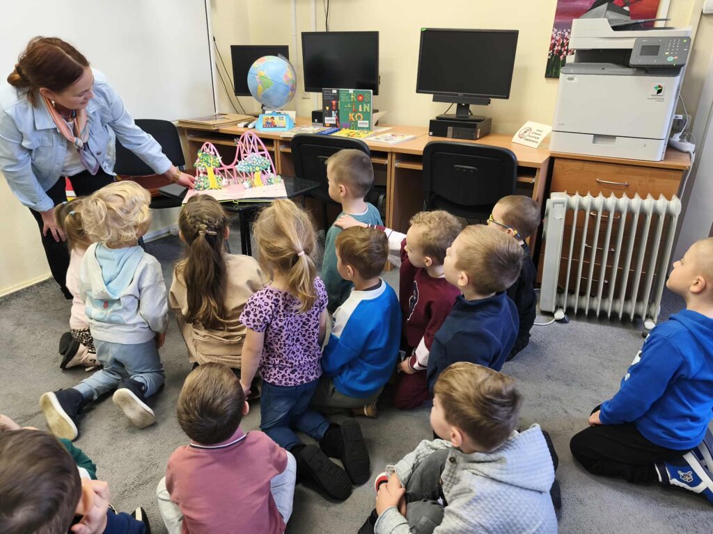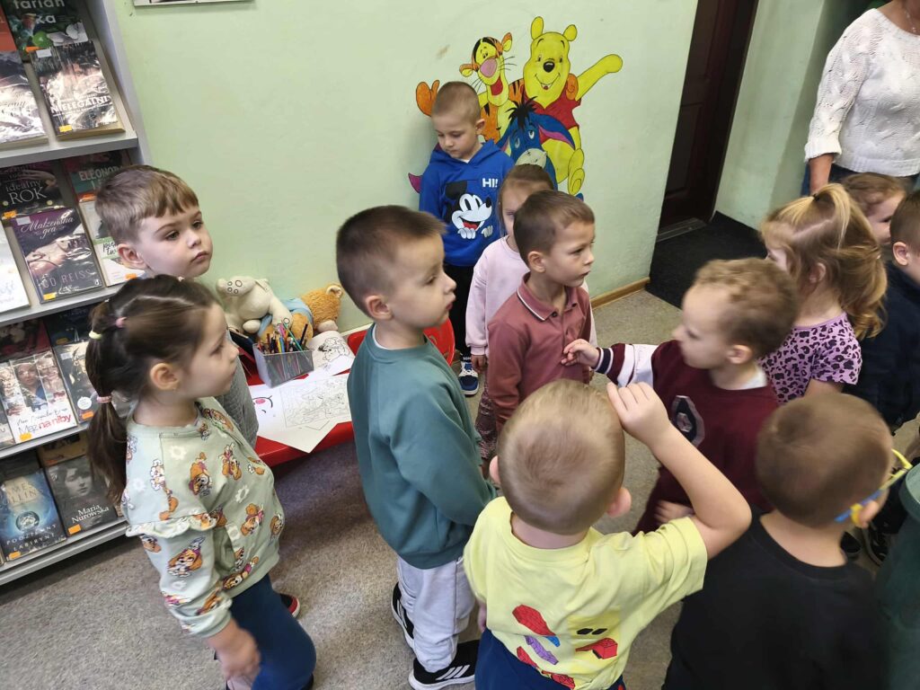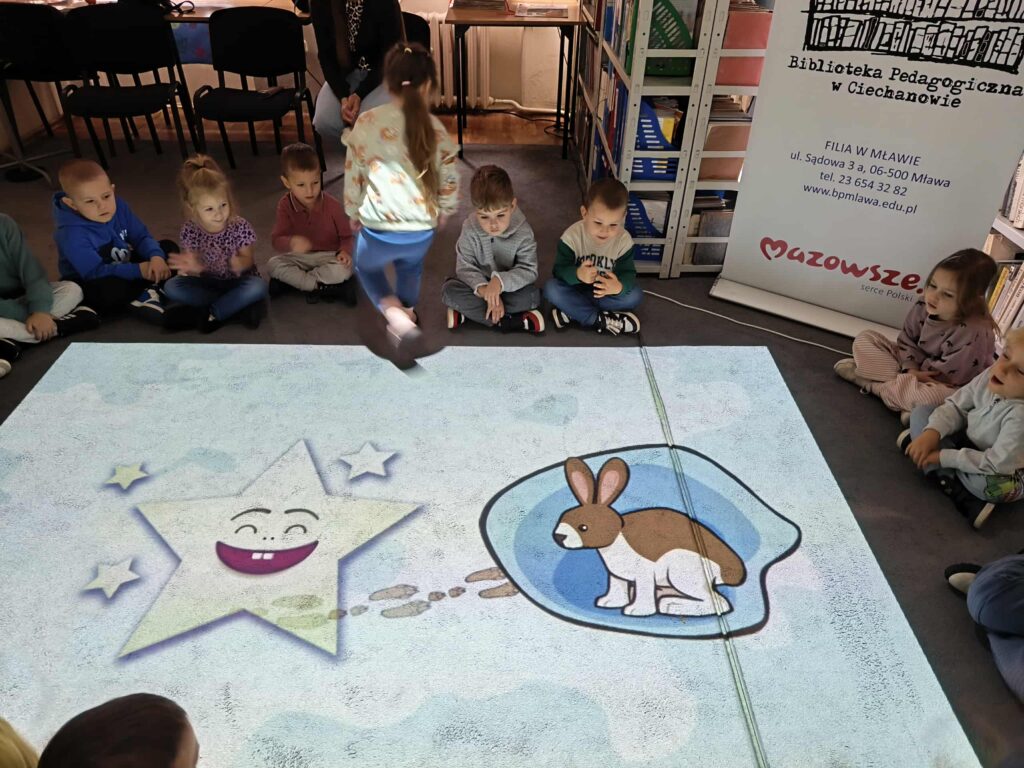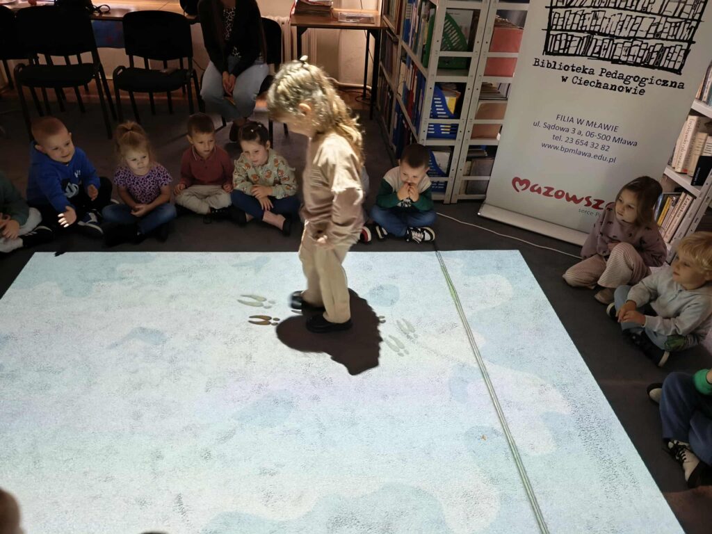 Agata Mierzwa i Anna Wesołowska w środowe przedpołudnie 29 października 2025 roku poprowadziły zajęcia edukacyjne z cyklu „Interaktywna biblioteka w praktyce” dla grupy „Księżyce” z MPS nr 4 w Mławie. Spotkanie było bardzo intensywne i obfitowało w liczne atrakcje. Było przy tym mnóstwo śmiechu i dobrej zabawy. Na początek nasi przemili goście poznali różne rodzaje książek, przy czym musimy zaznaczyć, że podobały się im absolutnie wszystkie bez wyjątku! Każdy chętny mógł też sprawdzić możliwości globusa interaktywnego. A wszyscy razem wysłuchaliśmy z zapartym tchem prezentowanej przez A. Mierzwę w teatrzyku kamishibai opowieści o „Rybaku i złotej rybce”. Potem A. Wesołowska bawiła się z dziećmi na magicznym dywanie, a zwieńczeniem spotkania było zwiedzanie pomieszczeń biblioteki, po których przesuwaliśmy się „pociągiem” dbając o to, by nie zgubić żadnego z cennych wagoników. Było nam bardzo miło Was gościć!