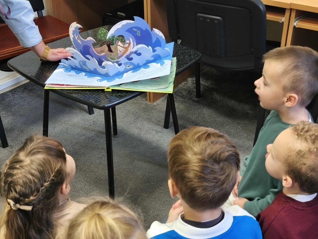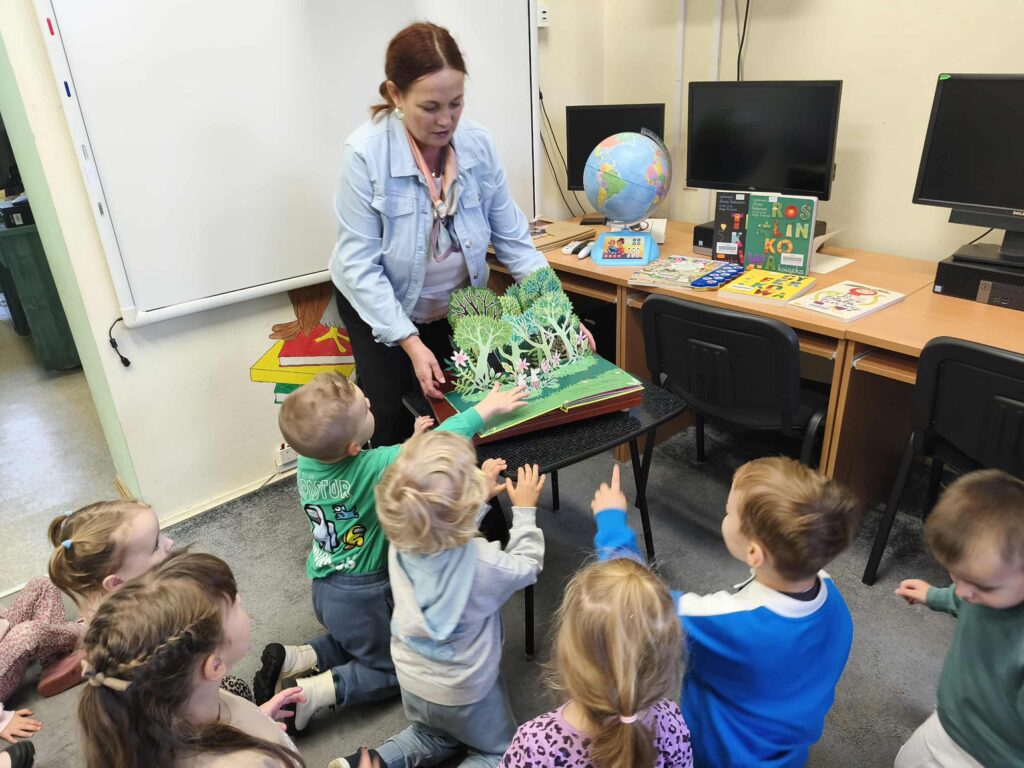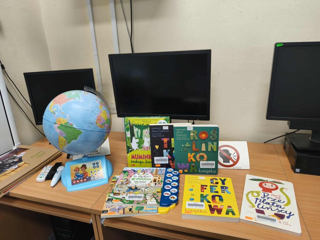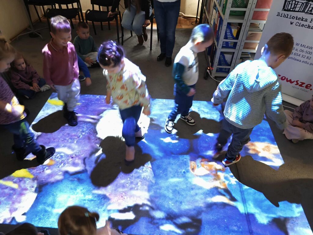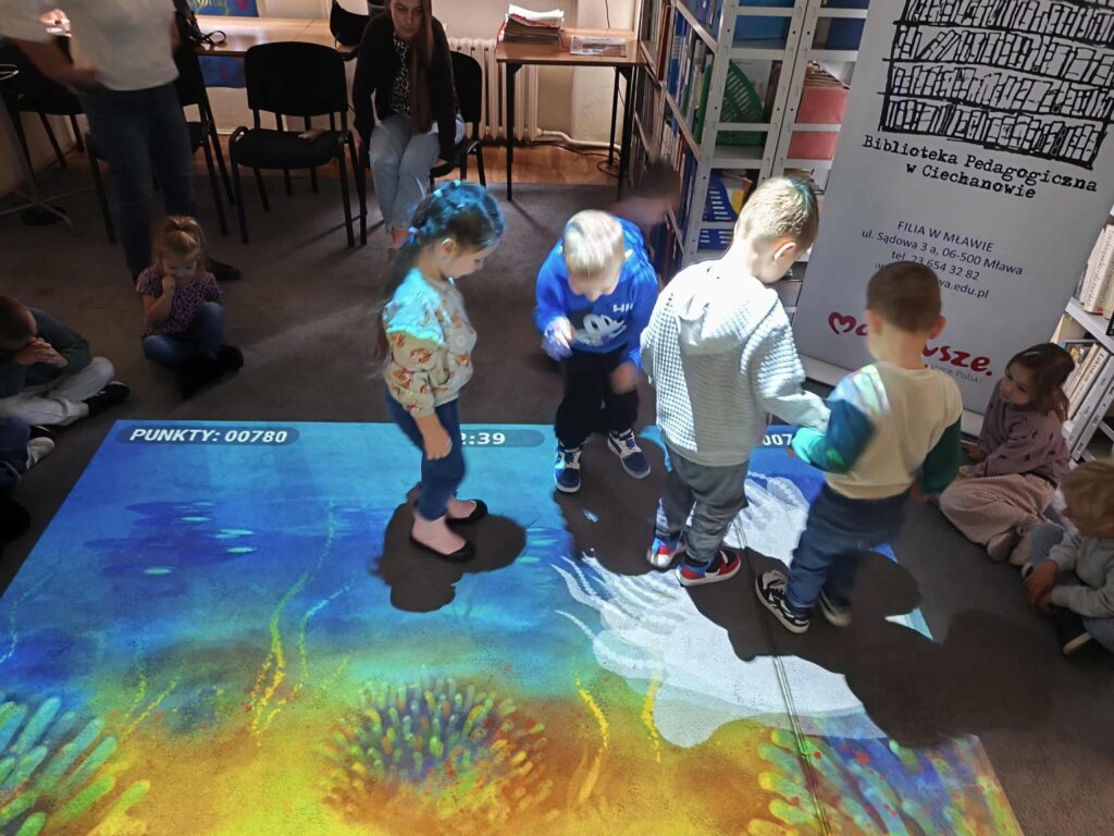 Agata Mierzwa i Anna Wesołowska w środowe przedpołudnie 29 października 2025 roku poprowadziły zajęcia edukacyjne z cyklu „Interaktywna biblioteka w praktyce” dla grupy „Księżyce” z MPS nr 4 w Mławie. Spotkanie było bardzo intensywne i obfitowało w liczne atrakcje. Było przy tym mnóstwo śmiechu i dobrej zabawy. Na początek nasi przemili goście poznali różne rodzaje książek, przy czym musimy zaznaczyć, że podobały się im absolutnie wszystkie bez wyjątku! Każdy chętny mógł też sprawdzić możliwości globusa interaktywnego. A wszyscy razem wysłuchaliśmy z zapartym tchem prezentowanej przez A. Mierzwę w teatrzyku kamishibai opowieści o „Rybaku i złotej rybce”. Potem A. Wesołowska bawiła się z dziećmi na magicznym dywanie, a zwieńczeniem spotkania było zwiedzanie pomieszczeń biblioteki, po których przesuwaliśmy się „pociągiem” dbając o to, by nie zgubić żadnego z cennych wagoników. Było nam bardzo miło Was gościć!