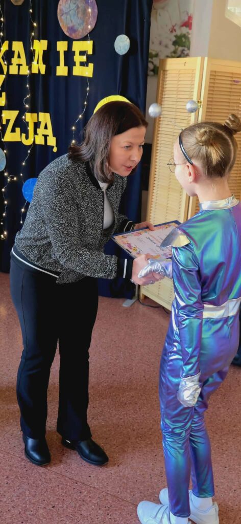 4 marca 2026 r. Bogumiła Pawłowska, na zaproszenie Katarzyny Chmielewskiej-Jeziorskiej, bibliotekarza Szkoły Podstawowej nr 2 w Mławie, była członkiem jury szkolnego konkursu recytatorskiego ph. „Spotkanie z poezją”. Uczestnicy – uczniowie klas I-III – recytowali wiersze, których tematem był kosmos i jego mieszkańcy, gdyż patronem szkoły jest Mikołaj Kopernik. Członkowie jury zwracali uwagę na dobór repertuaru, zrozumienie tekstu i umiejętność przekazania emocji, poprawną artykulację i ogólny wyraz artystyczny. Wszyscy uczestnicy włożyli wiele pracy w przygotowanie się do konkursu, a widzowie byli pod wrażeniem ich recytacji. Spotkanie z poezją w kosmicznym wydaniu bardzo się podobało. Zwycięzcom gratulujemy i życzymy dalszych sukcesów.