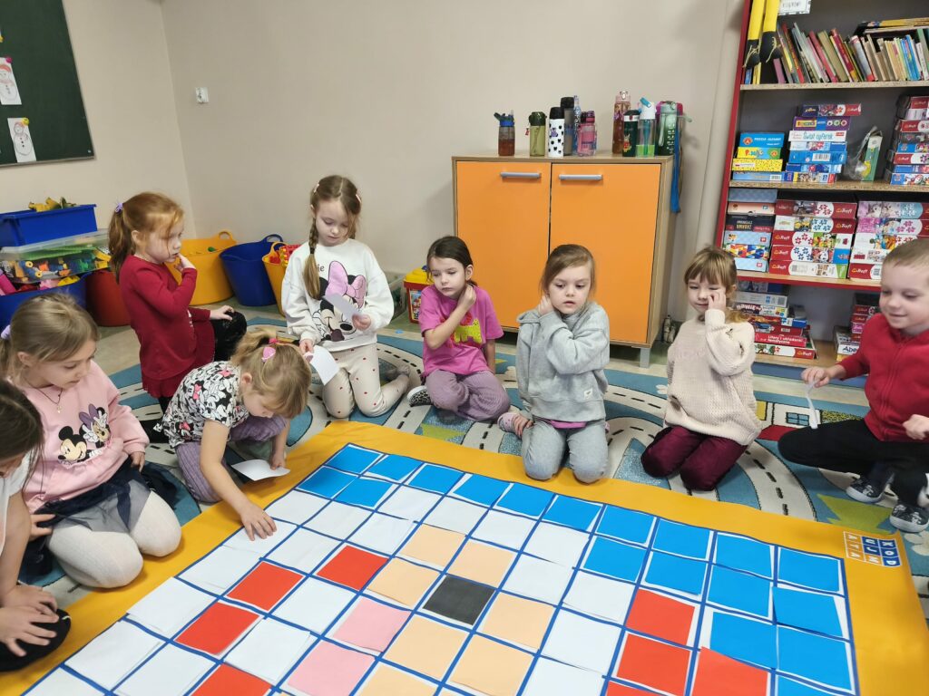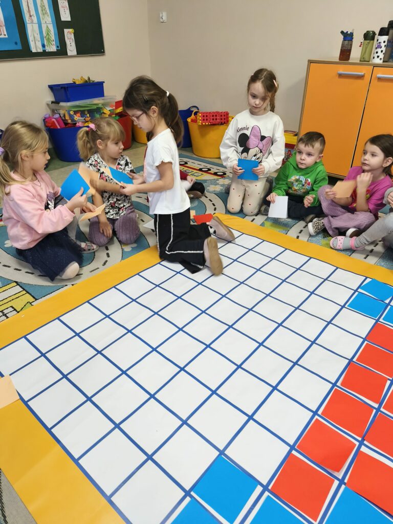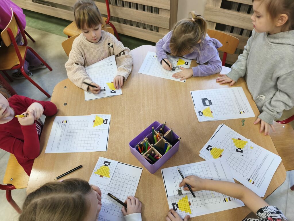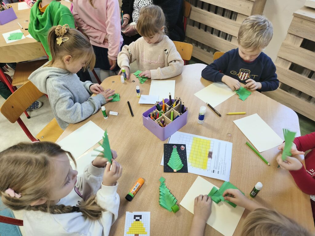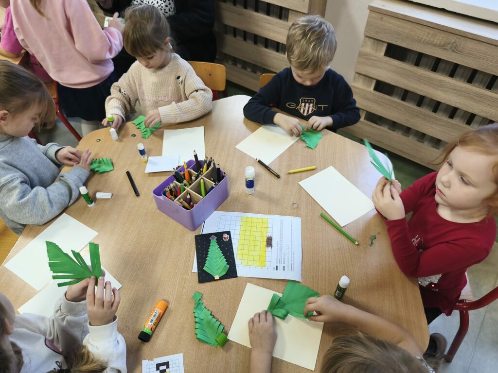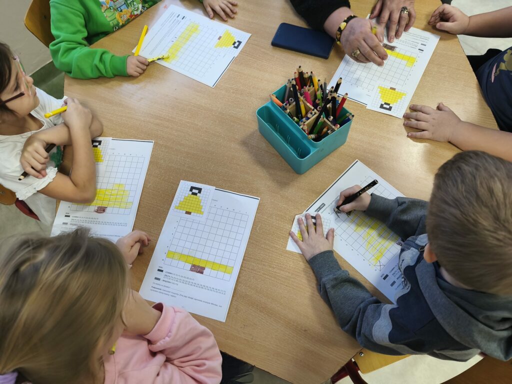 A. Wesołowska we wtorek 9 grudnia 2025 poprowadziła zajęcia edukacyjne dla 5-latków z SP nr 7 w Mławie. Mimo brzydkiej pogody za oknem, deszczu i iście jesiennej szarugi zajęcia przebiegły w cudownej, ciepłej i radosnej atmosferze. W nawiązaniu do obchodzonych w ubiegłą sobotę „Mikołajek” rozpoczęliśmy nasze spotkanie przemiłą rozmową o prezentach. Nie tylko o tym, kto jakie dostał choć nie ukrywam że oczywiście też :), interesowało nas również gdzie zostały znalezione w bucie, skarpecie a może pod poduszką. Dzieciaki wysłuchały czytanych przez prowadzącą bajek o Świętym Mikołaju, a potem zakasaliśmy rękawy do wspólnej pracy ćwicząc przy tym percepcję wzrokową, orientację przestrzenną, logiczne myślenie i koncentrację uwagi. Pracy było całkiem sporo, zaczęliśmy od „odkodowania” Świętego Mikołaja właśnie. Było to spore wyzwanie, ale tym większą radość sprawiło nam wszystkim wspólne wykonanie zadania. Kolejnym etapem było bożonarodzeniowe dyktando graficzne. Spotkanie zwieńczyło wykonanie kartek świątecznych. Tutaj pracowaliśmy nad sprawnością manualną i precyzją ruchów. Poszło nam nad wyraz sprawnie i sprawiło dużo radości.