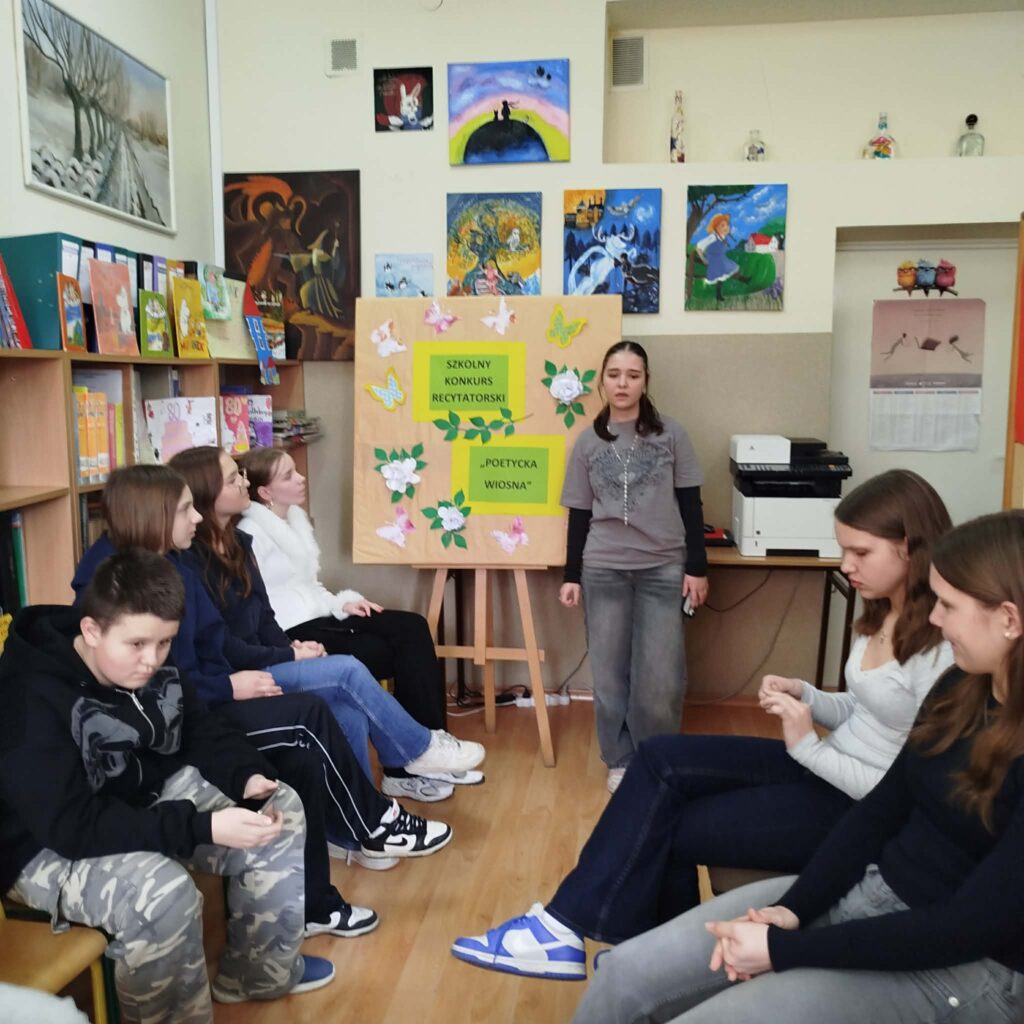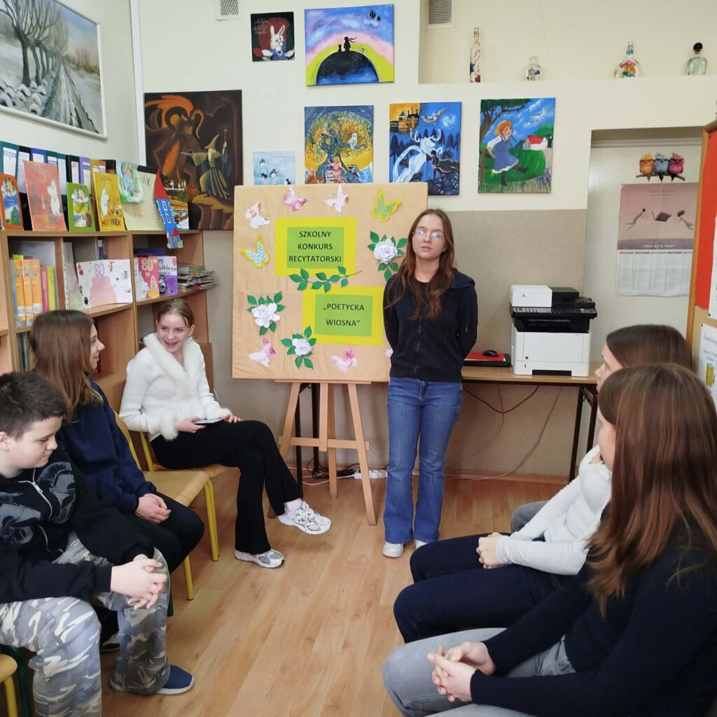 2 marca 2026 r. Bogumiła Pawłowska, na zaproszenie Wioletty Polak, bibliotekarza Szkoły Podstawowej nr 3 w Mławie, była członkiem jury szkolnego konkursu recytatorskiego ph. „Poetycka wiosna”. Uczestnicy recytowali wiersze m.in. Wisławy Szymborskiej, Ewy Lipskiej, Haliny Poświatowskiej, a członkowie jury zwracali uwagę na dobór repertuaru, zrozumienie tekstu i umiejętność przekazania emocji, poprawną artykulację i ogólny wyraz artystyczny. Wszyscy uczestnicy za trud i wysiłek włożony w przygotowanie się do konkursu, otrzymali dyplomy i upominki. Zwycięzcom gratulujemy i życzymy dalszych sukcesów.