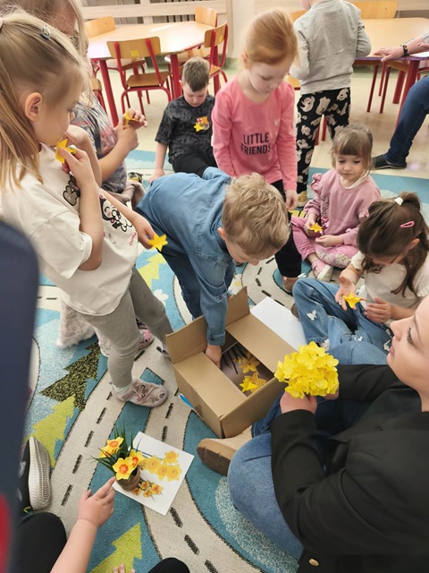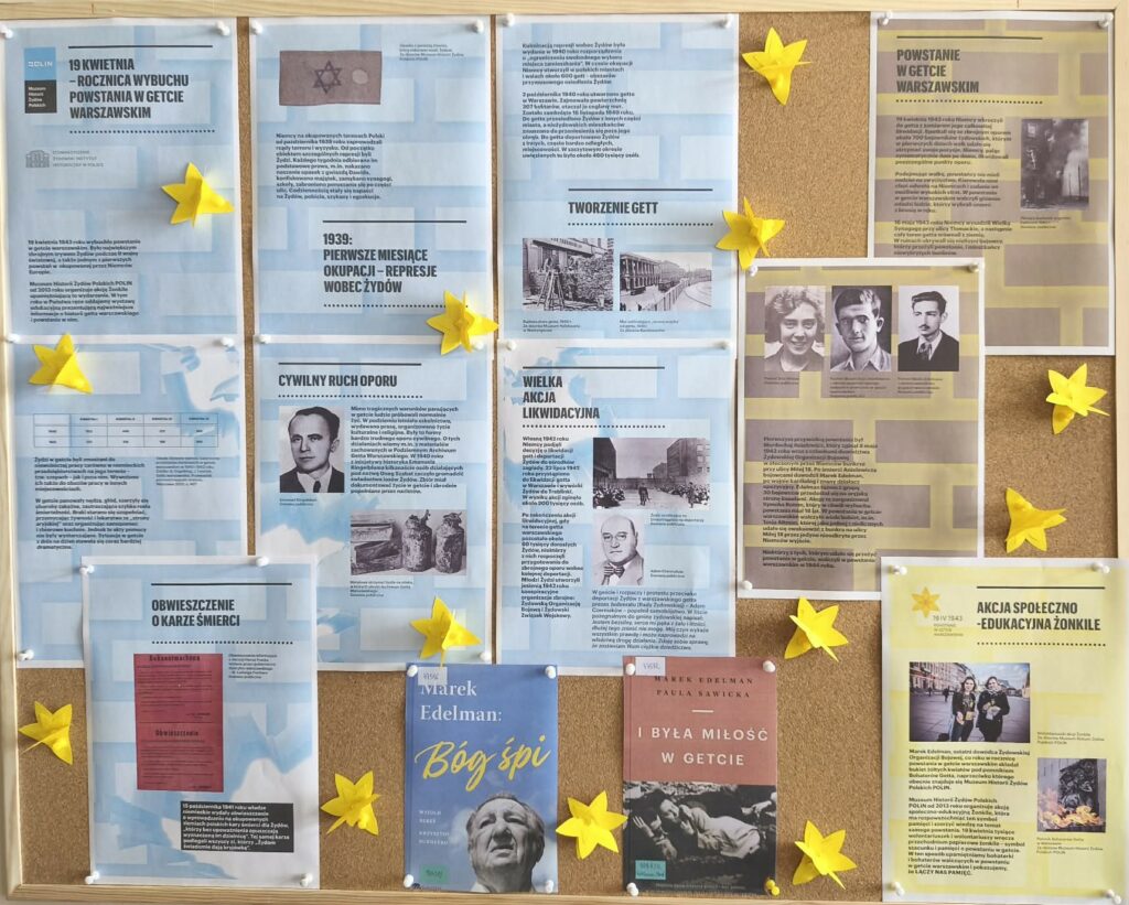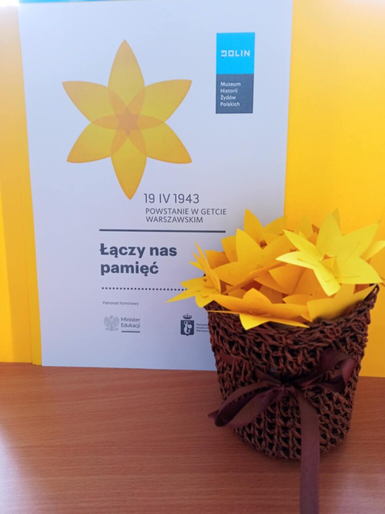 W tym roku 19 kwietnia przypadł w niedzielę w związku z czym nasza akcja rozłożyła się w czasie. Uczniowie szkół wzięli udział w zajęciach edukacyjnych poświęconych tej tematyce. Można było też oglądać przygotowane na tę okoliczność wystawy. Rozdawaliśmy także symbol akcji, papierowe żonkile, które wyrażają zbiorową pamięć o tym tragicznym wydarzeniu.