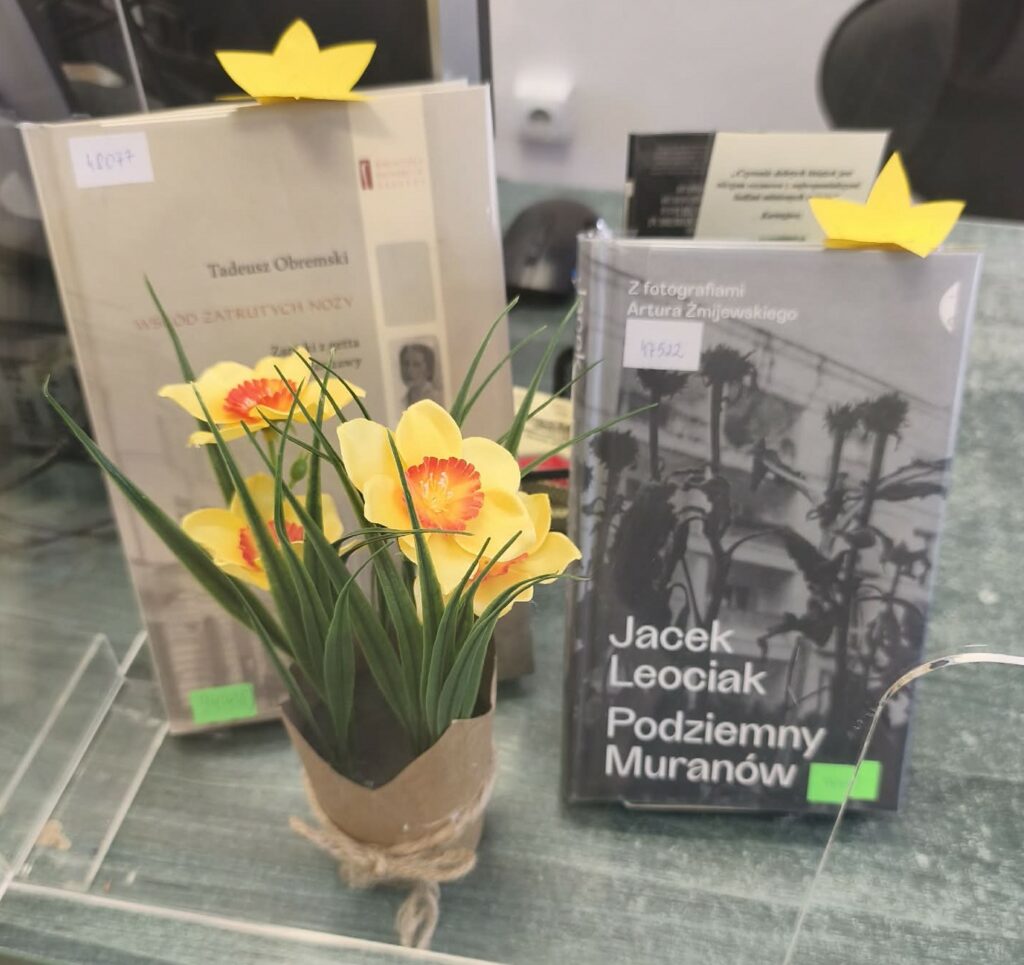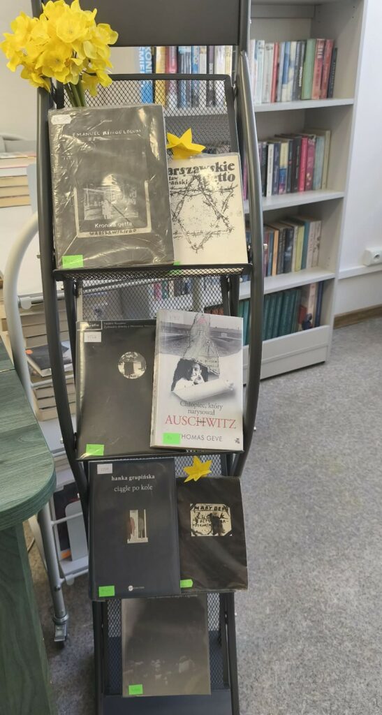 W bieżącym roku kalendarzowym nasza biblioteka po raz kolejny wzięła udział w „Akcji społeczno-edukacyjnej Żonkile”. Ma ona na celu przywracanie pamięci o wydarzeniach z 19 kwietnia 1943 r., kiedy to wybuchło powstanie w getcie warszawskim. W tym roku mijają 83 lata od tego wydarzenia. Samo powstanie było największym zbrojnym zrywem Żydów podczas II wojny światowej, a jednocześnie pierwszym powstaniem miejskim w okupowanej Europie. Każdego roku 19 kwietnia Muzeum Historii Żydów Polskich POLIN organizuje akcję społeczno-edukacyjną Żonkile.